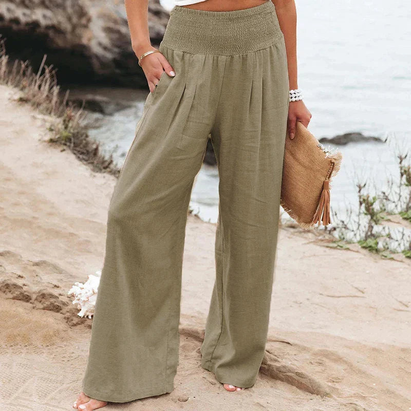 Casualowe spodnie damskie z wysokim stanem i szerokimi nogawkami
