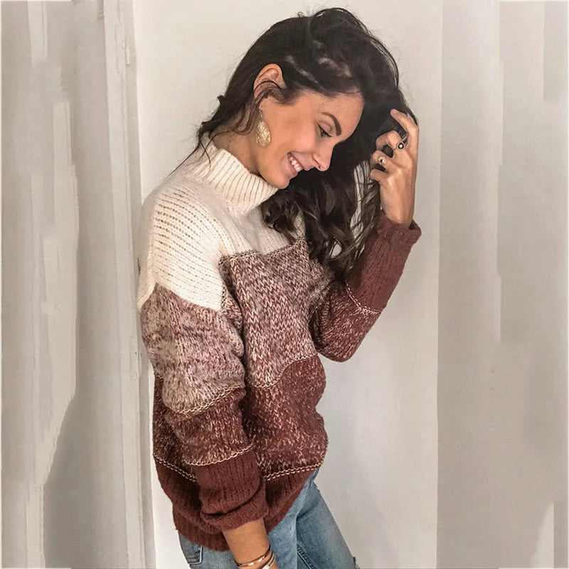 - Sweter z dzianiny z wysokim kołnierzem w minimalistycznym stylu